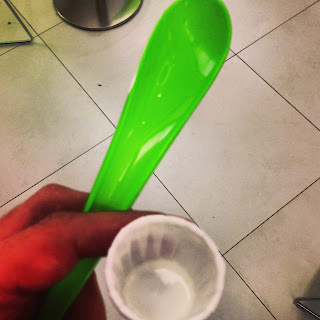 Estava a comer e a beber um café ao lado das pessoas que referi. Até que, um dos senhores suja as calças perto do fecho das mesmas. Levantou-se imediatamente. À mesma velocidade, umas das senhoras, provavelmente mulher, começa a esfregar a zona suja com um guardanapo.